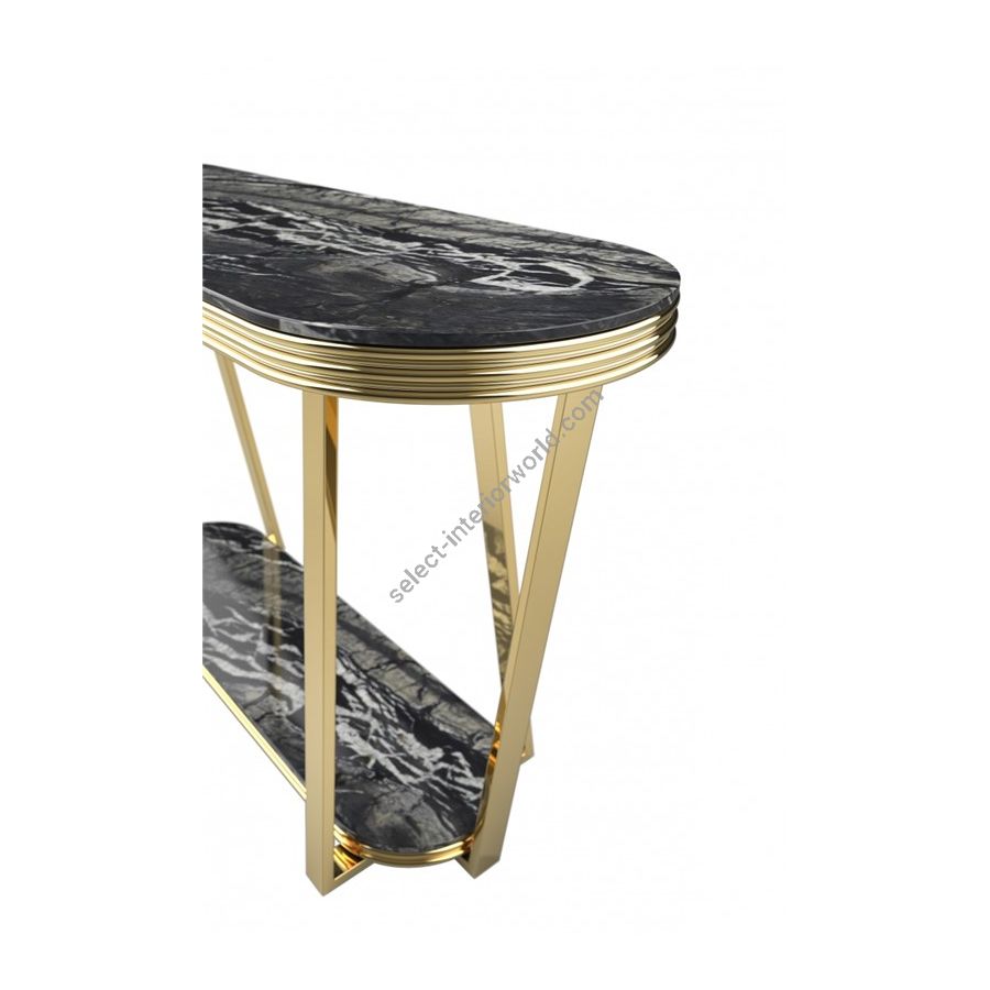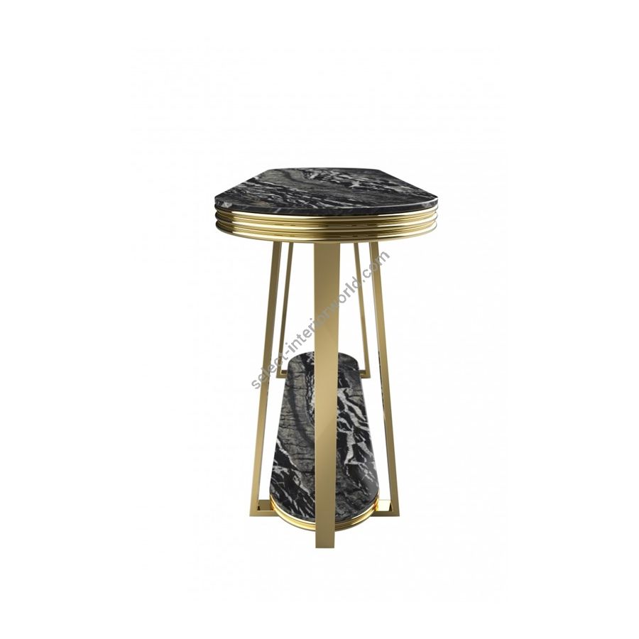 “Euphoria” symbolizes a feeling of pure happiness, a contemplative state of joy. Converting this idea into a design, the Euphoria Collection combines an elegant set of brass rings with different metal finish options on top and the bottom of the console. This contrast enhances the magnificence of the marble, conferring to the living spaces a unique touch of luxury. Gold-plated brass tubes with different diameters married with premium marble result in a subtle, delicate silhouette of the refined modern console. The elegant Euphoria console features the classic shape of a credenza – the timeless Castro design touch. Euphoria Console brass rings and legs use the same metallic finishes, thus can be bespoken in a wide range of well-aligned yet contrasting brass finishes, combining them in a unique manner to create a signature design.
