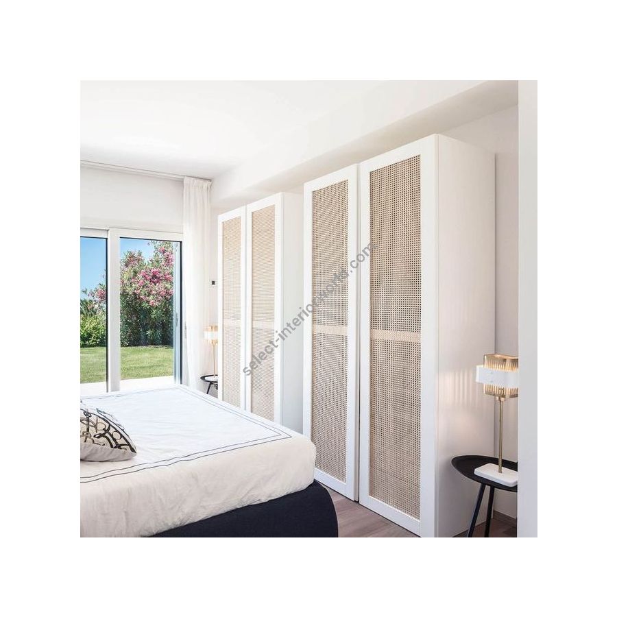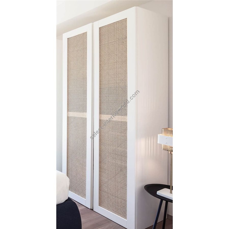 The Quisisana Alto cabinet has a mat lacquered structure (white/ivory/black) with Vienna straw doors. Mat lacquered internally, Quisisana Basso has 2 doors and comes with 5 internal shelves. Led lighting system available upon request.| Dimensions (HxWxD): | cm: 220x100x40 / inch: 86.61"x39.37"x15.75" |