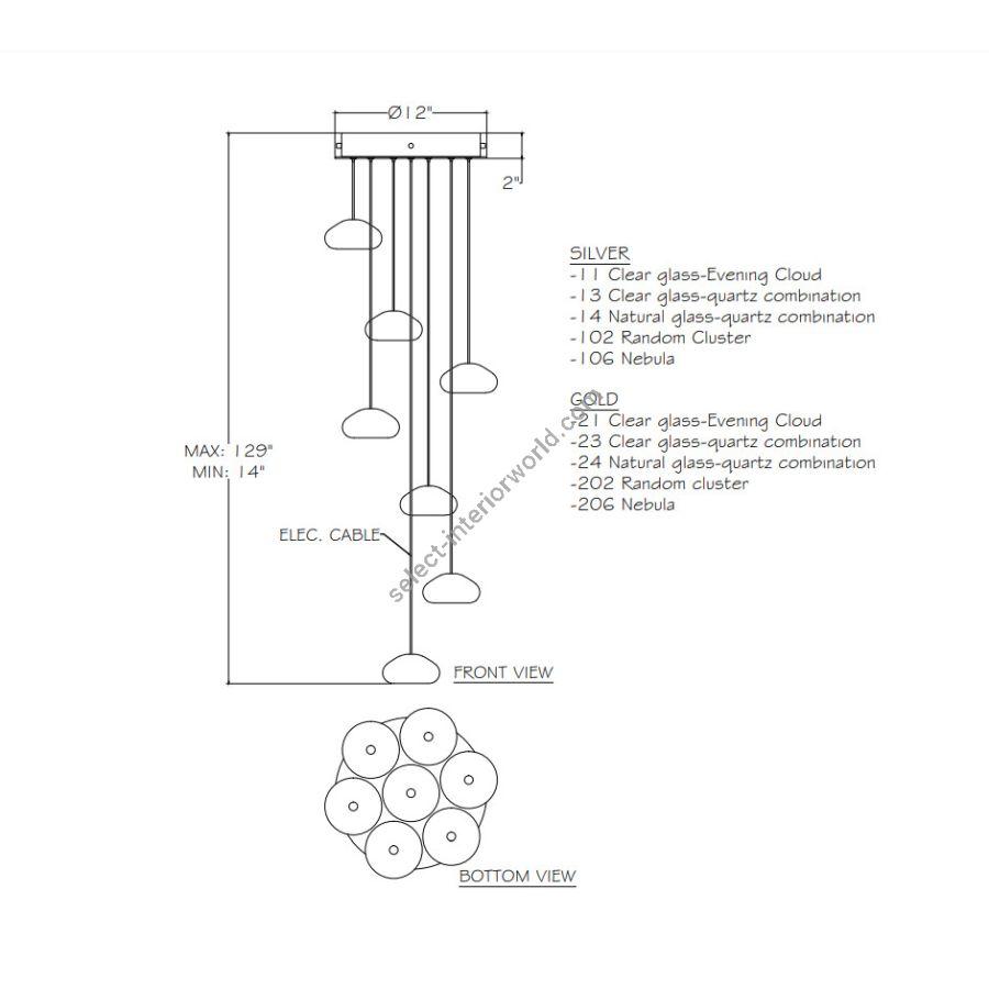 TBorn from the core elements of Earth, inspired by the beauty of nature, and created by the sculpting hands of master glass artists. A collection of precious drop lights as wondrous and unique as nature itself. Available in standard silver leaf or gold-toned silver leaf finish, and your choice of five hand-blown glass options. Custom finishes and custom sizes available on all canopies.