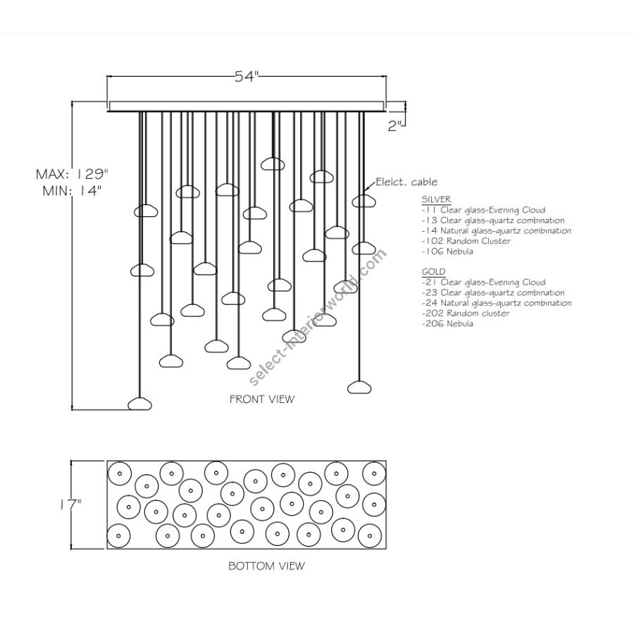 TBorn from the core elements of Earth, inspired by the beauty of nature, and created by the sculpting hands of master glass artists. A collection of precious drop lights as wondrous and unique as nature itself. Available in standard silver leaf or gold-toned silver leaf finish, and your choice of five hand-blown glass options. Custom finishes and custom sizes available on all canopies.