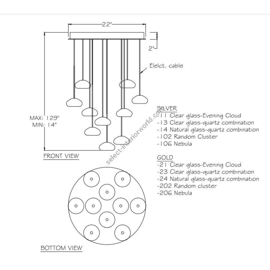 TBorn from the core elements of Earth, inspired by the beauty of nature, and created by the sculpting hands of master glass artists. A collection of precious drop lights as wondrous and unique as nature itself. Available in standard silver leaf or gold-toned silver leaf finish, and your choice of five hand-blown glass options. Custom finishes and custom sizes available on all canopies.