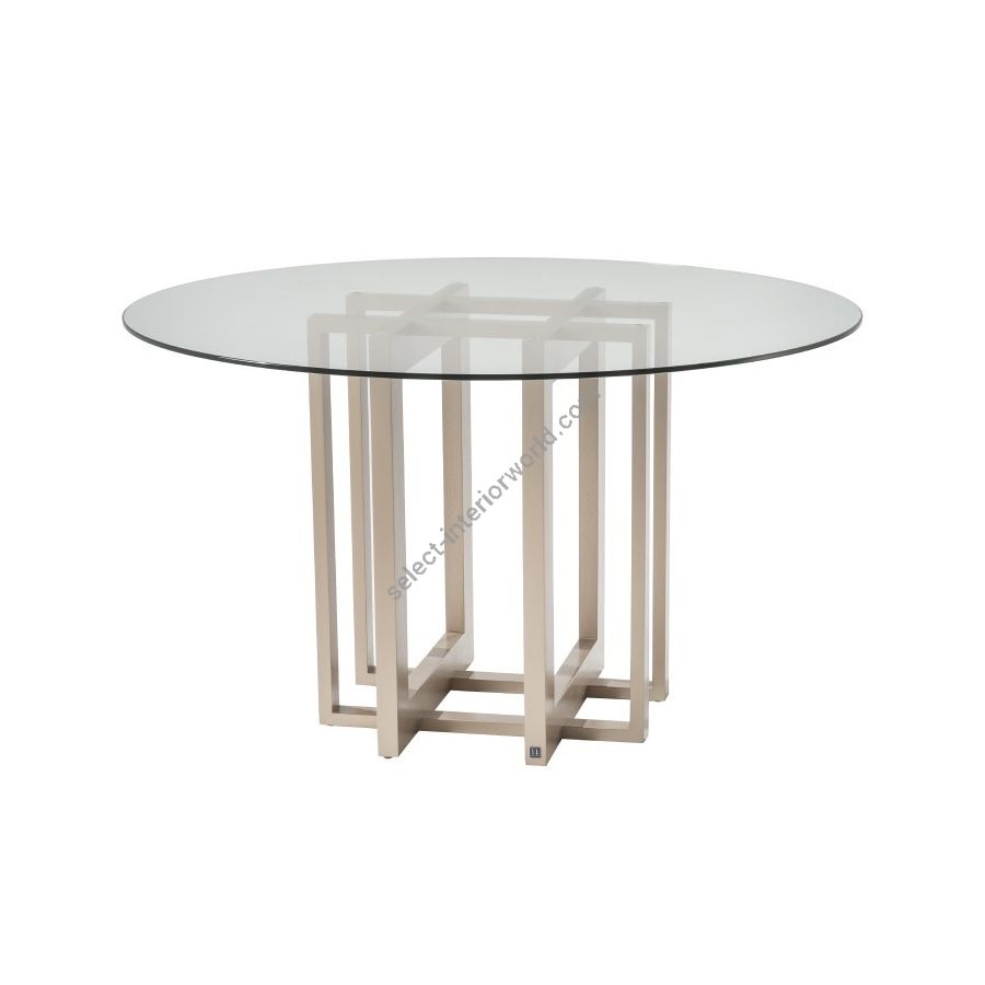 The H Dining Table is a simple piece with linear details on its base. This furniture is ideal for small spaces, thanks to its round glass top that makes it a light and adaptable piece. The entrance of light through the glass gives the feeling of amplitude.