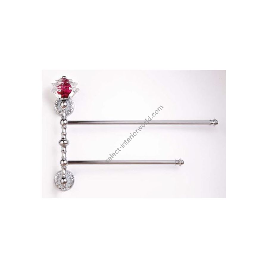 Double towel holder in chrome brass with italian crystal rose clamped by hand. Functional elements that create an extremely elegant, welcoming and high-value bathroom.