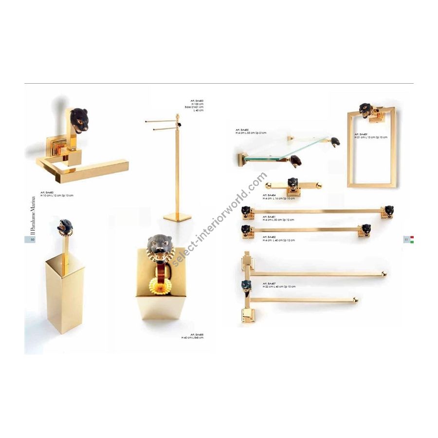 Towel holder in oro24K with micro casting of enameled brass panther. Functional elements that create an extremely elegant, welcoming and high-value bathroom.
