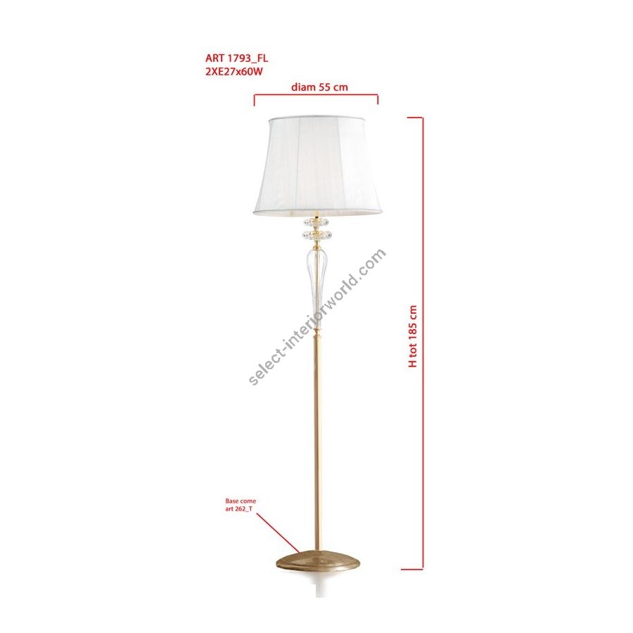 Amarillis Collection: Floor lamp in clear Murano glass with light ivory lampshade in double fabric with crystal trimming. Lighting item that diffuses the light with great effect in the surrounding environement creating a warm and welcoming atmosphere.