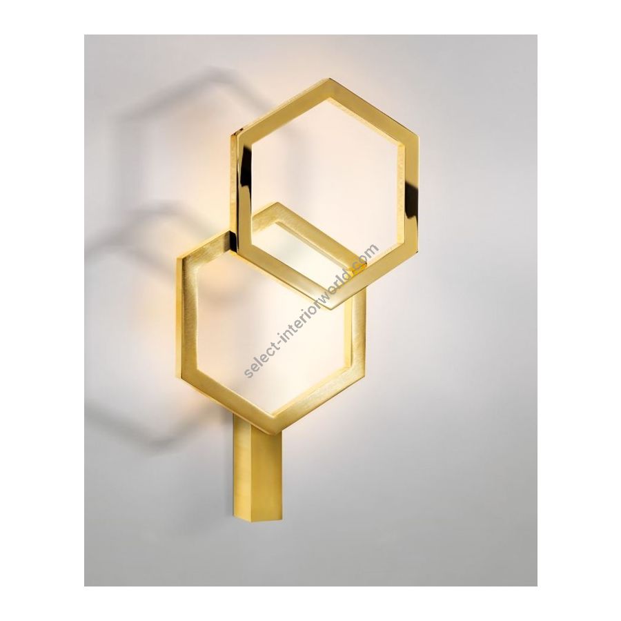 Hexagon collection wall sconce metal Brass with Strip Led. Driver included in the metal wall base. Lighting item that diffuses the light with great effect in the surrounding environement creating a warm and welcoming atmosphere.