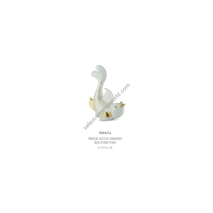 Big Eyed Fish Made of Porcelain 7024 by Le Porcellane, made entirely of porcelain and hand painted. A piece of the elegant and refined "Animali" collection. 100% Made in Italy product.