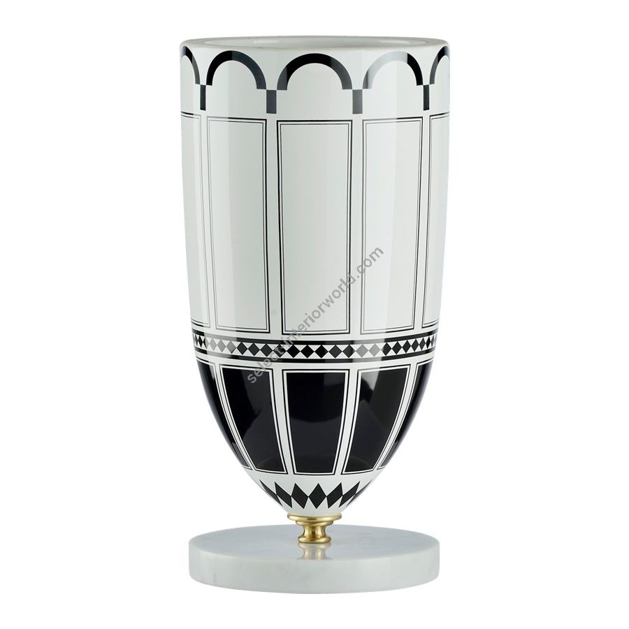 Marble Base, Porcelain Vase 3025 by Le Porcellane, made entirely of porcelain and hand painted. A piece of the elegant and refined "Don Giovanni" collection. 100% Made in Italy product.