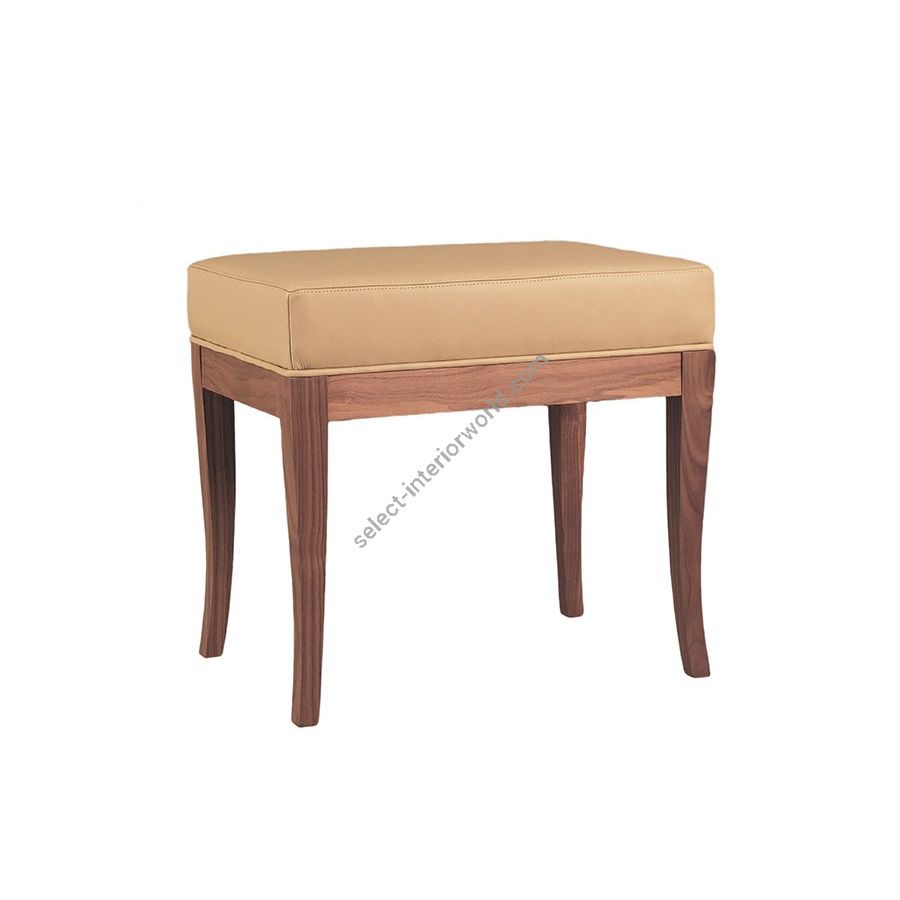Stool made of cherry wood with upholstered seat and shaped legs.