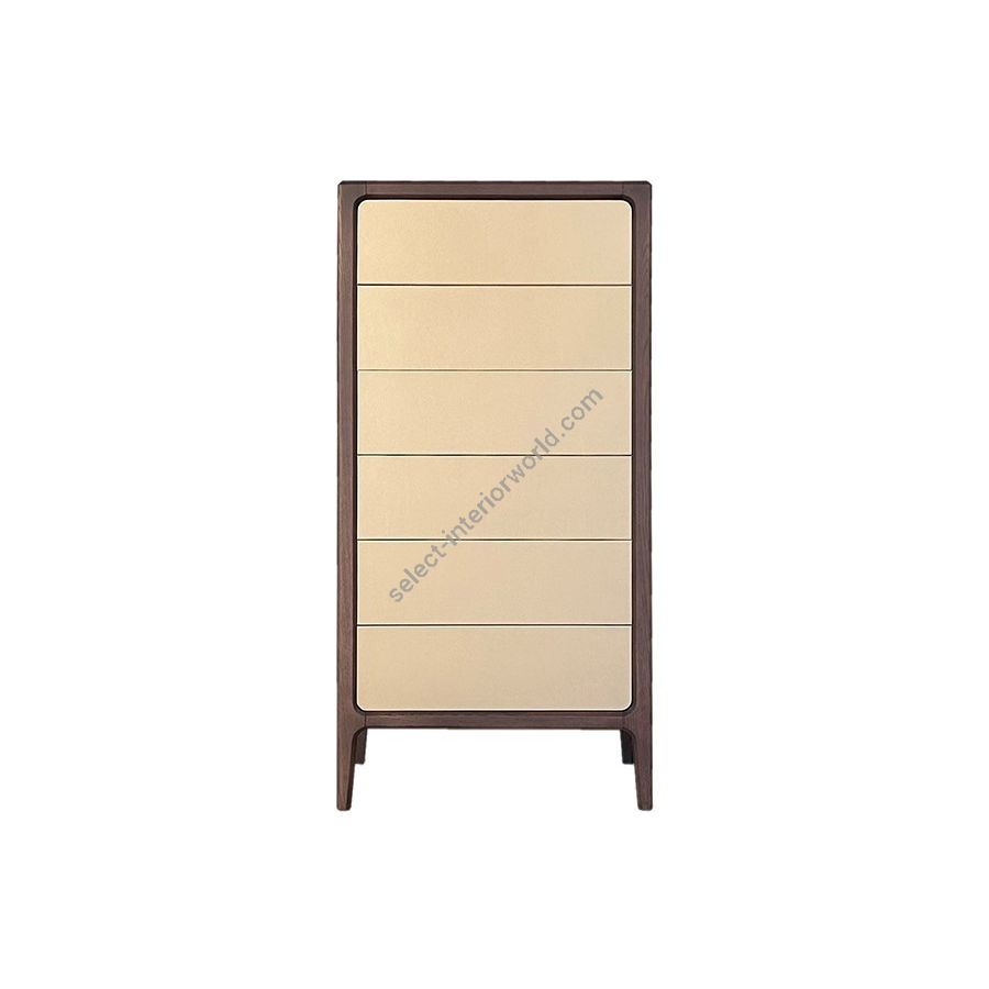 Ash wood chest of drawers with 6 drawers with pushpull opening. Drawer fronts also available with leather upholstery upon request. The wooden top can be customized with ceramic or glass insert. MEASURES: L 70 W 45 H 144 WEIGHT: 50 kg M3: 0,5 PIECES: 1 Production time: 60 days. Shipping included in the price.
