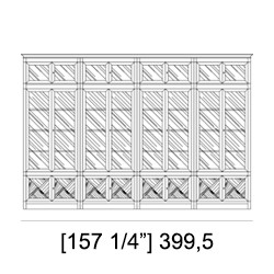 President in the new bookcase of impressive size and structure, completely made of solid cherry wood. A composition that can be customized in wood finishing and in the choice of doors open, or with glass, or wooden doors. The President recalls the Direttorio style, and is characterized by a simplification of lines and decoration aspects in favor of more classic geometric lines.