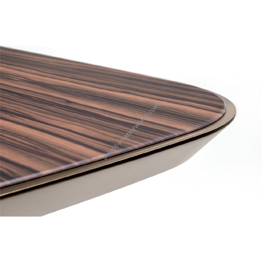 Bevel Wood top in Canaletto walnut/Canaletto Henné or with edges in Bronze (100M) finish and cover in Marmoreflex/Legnoreflex.