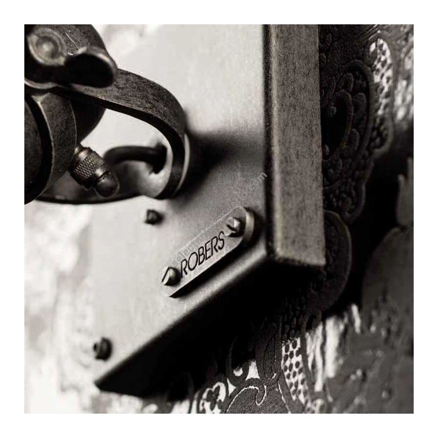 This small spot lamp from the collection “Indoor 9” has an elegant design made by talented blacksmiths of Robers. The material of the lamp is hard steel in one of 10 finishes: the square panel, the lampshade, and the decorative elements. This spot lamp reminds of the studios where famous directors create their movies using powerful searchlights. Robers provides the lamp by its branded engrave to show it belongs to the high-niche category of lighting and deserves to decorate the most luxurious spaces. Despite being a part of the indoor line, this spot will serve perfectly in that garden, patio, or a terrace. All details are crafted and assembled by hand and build a lamp that will become a statement of the space.