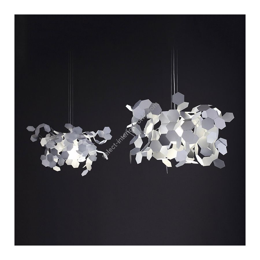 Available in a range of finishes, Andromeda seamlessly adapts to different interiors, from minimalist settings to more expressive environments. Its branch-like structure enhances the sense of organic movement, while the geometric panels diffuse light in a way that transforms the atmosphere of the room, making it both functional and visually captivating.