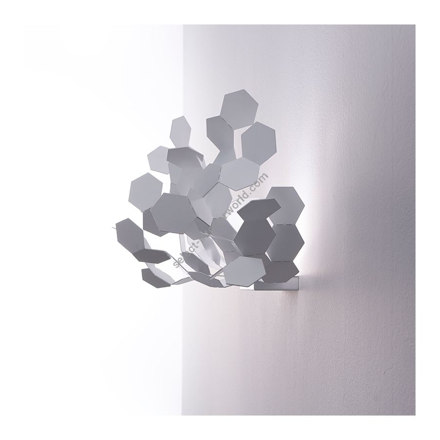 The Andromeda Wall Lamp by Zava, designed by Paolo Ulian, is a harmonious fusion of minimalism and sculptural elegance. Its distinctive shade, composed of hexagonal panels arranged in a delicate cluster, evokes the natural beauty of a blossoming flower. This intricate design transforms the lamp into more than just a light source—it becomes an artistic statement on the wall.
