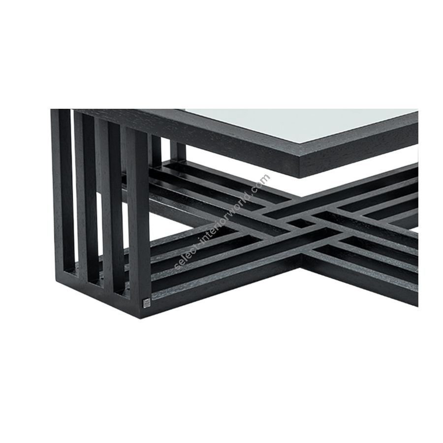 The Chocolate cocktail table is distinguished by its pure and contemporary design. Its base pattern is a delicate wooden ribbon weave which was originated by the idea of providing a scene of more lightness and airiness. The table's glass top rests on a Seike base in a rich contrast of scale.