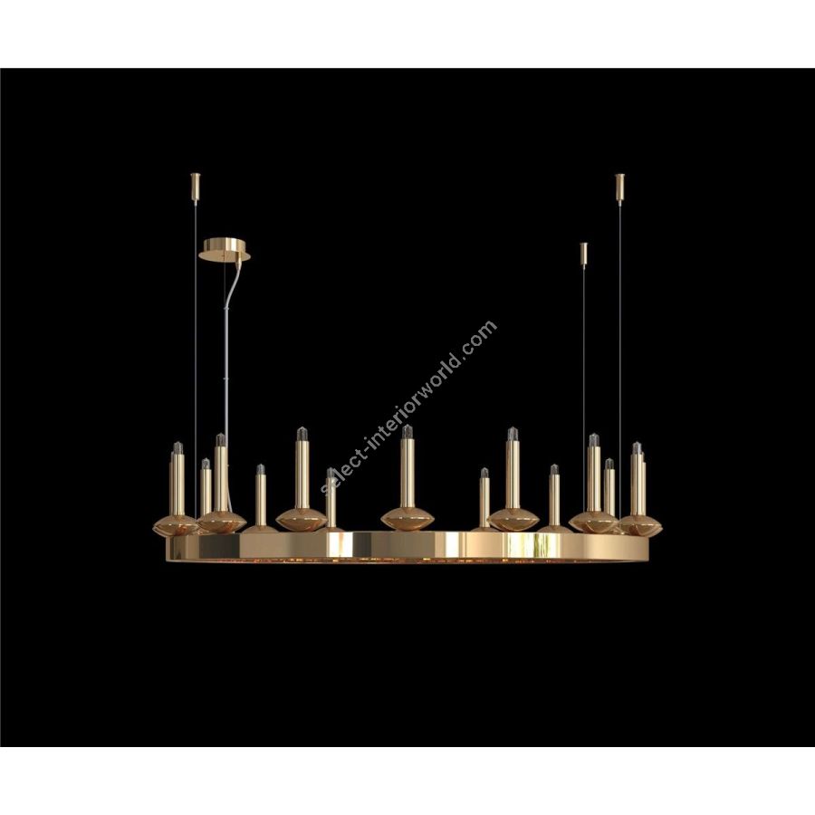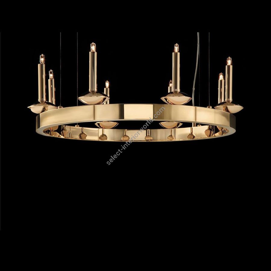 The modern suspension lamps of the SHAROON line are characterized by a minimal and compact design that is expressed with robust circular structures entirely made of brass of different sizes on which elegant slim candles are installed, for a direct diffusion of the light in the environment.