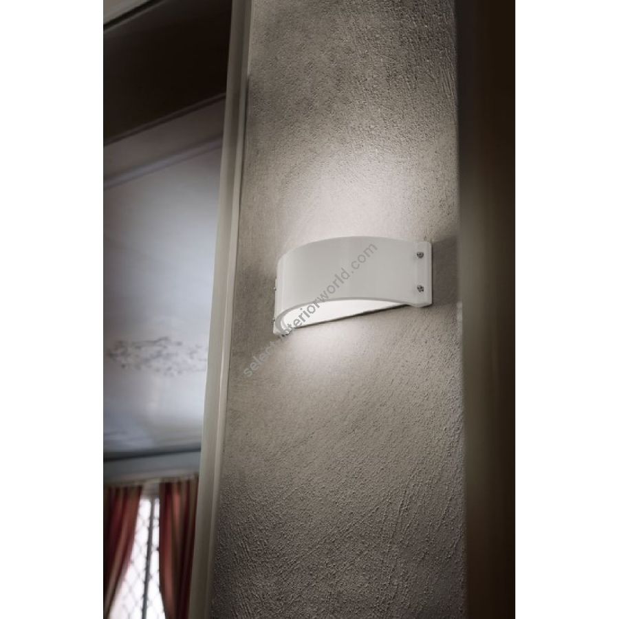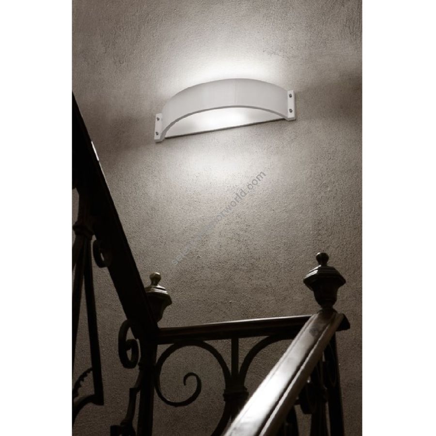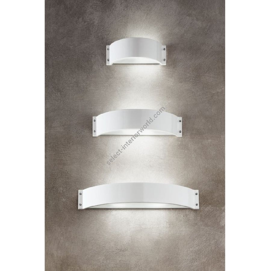 The Glamour line by Aldo Bernardi features a series of wall lamps in glazed white ceramic, characterized by essential and elegant forms. These wall fixtures come with a white/milk-colored methacrylate reflector, which diffuses a soft and pleasant light, creating a refined and cozy atmosphere.