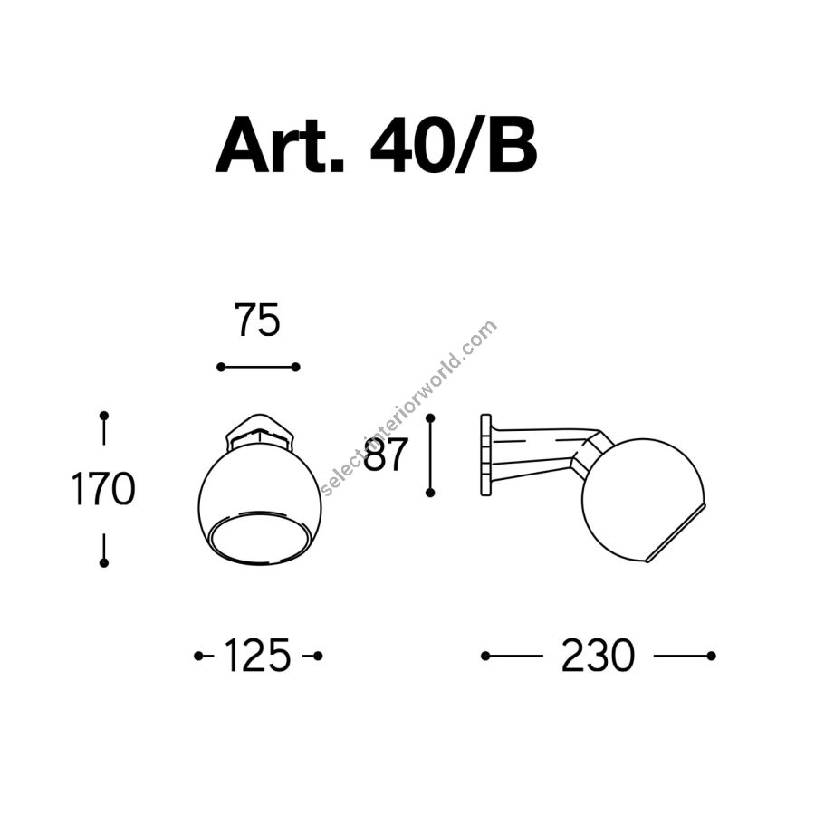 Quaranta is a wall fixture in white ceramic with a glossy milk-white diffuser.