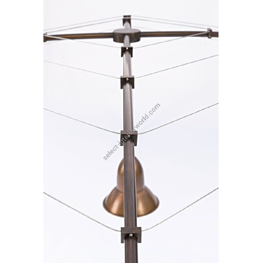 The construction consists of aged brass poles connected by aged brass tubing. The lighting appliance is in aged copper. It comes with all the accessories needed for a simple lawn anchoring, although it can be customized with wood, granite or bricks. The structure can be covered with canopy, climbing plants or Indian drapes. Horizontal dimensions can be adapted to existing or custom designed spaces. Item provided with lighting fixture including bulb.