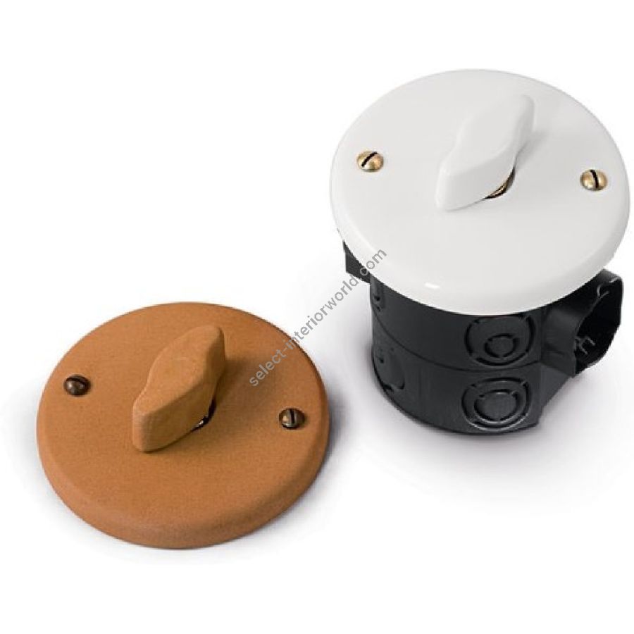 Ceramic surfaces mounted switches, sockets, Schuko socket and French shuttered 2 poles socket.