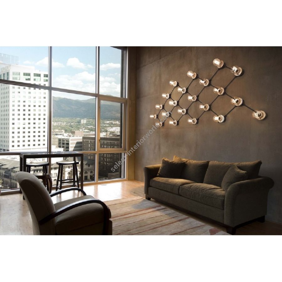 The spot consists of a base in antique brass or satin nickel and from a ceramic lamp holder, glossy white or glossy black finishing. It can be used as a single spot or with more outputs that allow the realization of a rhombus. Conduits are available in the same finishes of the spot.