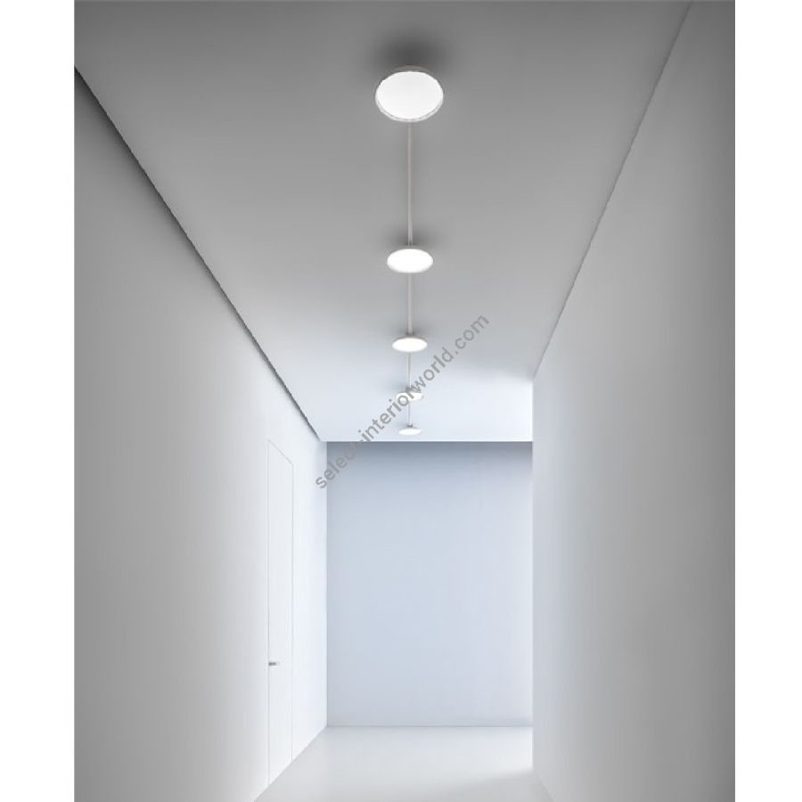 This interesting indoor system is an integration of the homonymous series. MYMOONS ceiling lamp or pendant become refined points of light inside the system and must be integrated with 16, 22 or 28 mm conduits , that do not require additional accessories for their connection. It is however necessary to specify, at the time of ordering , the rose output/s you intend to keep open for the conduits connection and its diameter. The available finishes are the enveloping matte white or the sophisticated matte black.