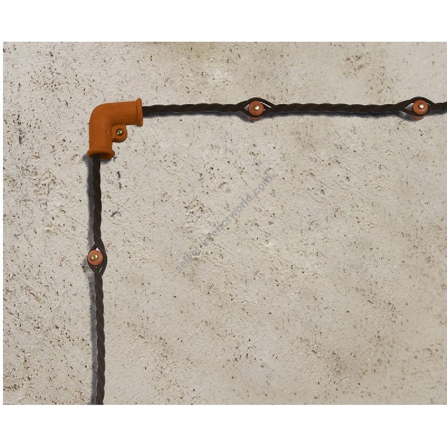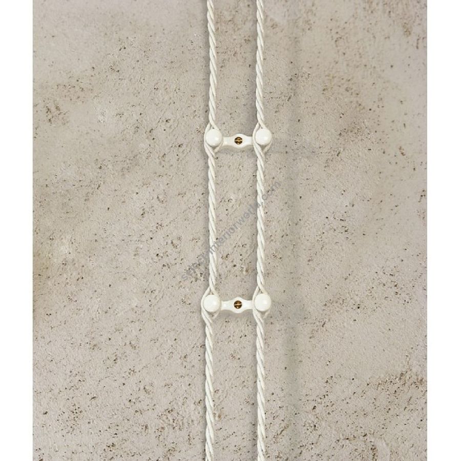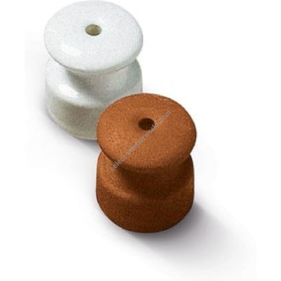 This series of accessories integrates the system with cotton braid and is composed of ceiling roses, wood cover for ceramic bases, single insulators, twisted cloth cord and ceramic plates.