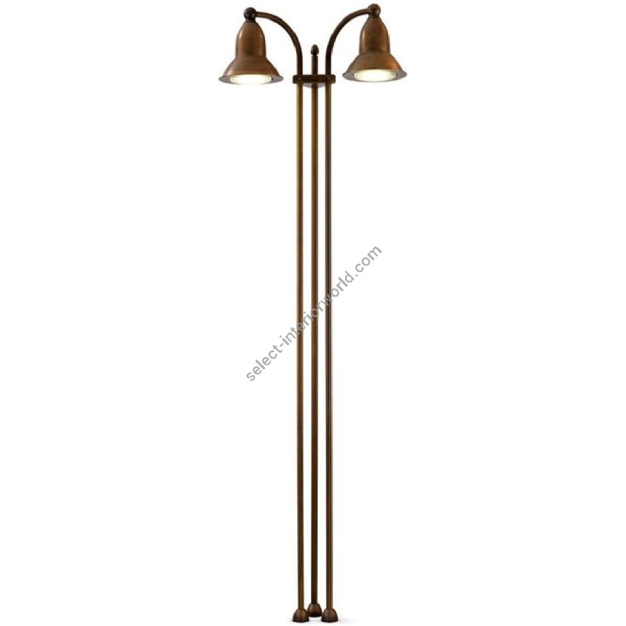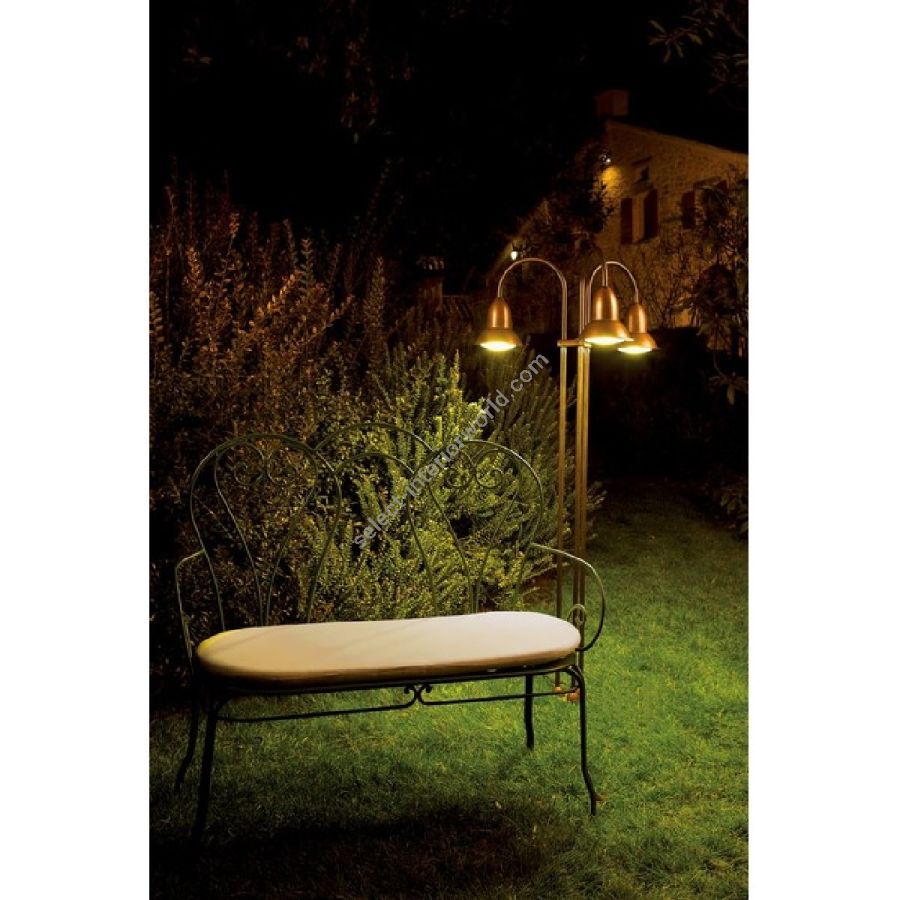 Series of wall lamp and outdoor floor-standing lamp available in 1,2 or 3 lights version, with copper reflector and brass and cast brass components.