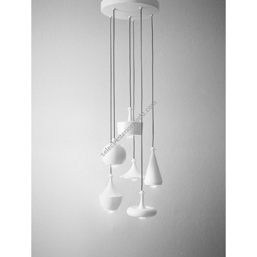 The round multiple canopy (white or black matt) allows to realize set up to 6 pendants.