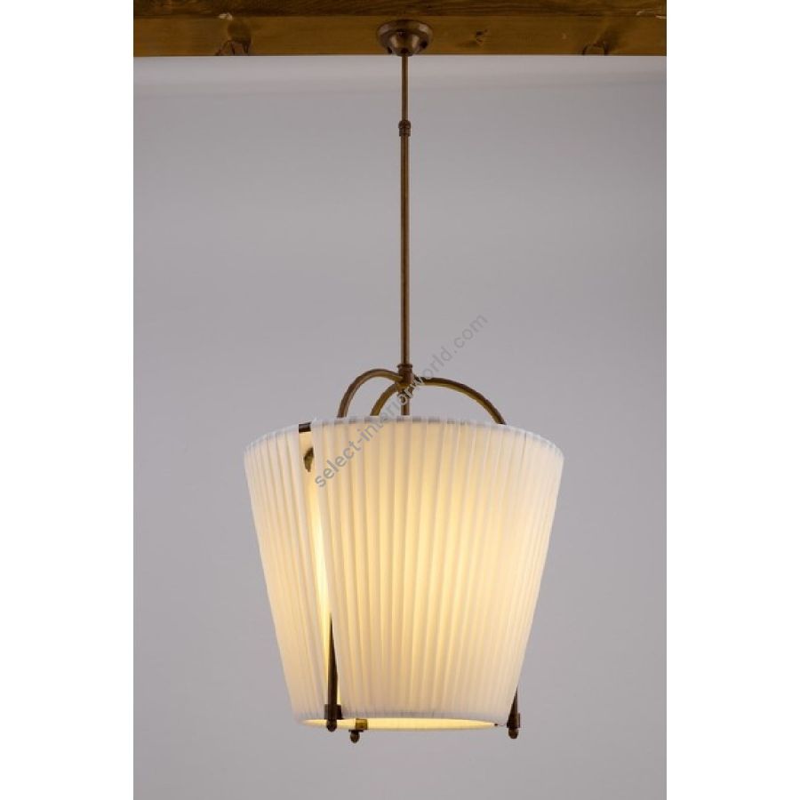 The Rangiroa line by Aldo Bernardi embodies the elegance and sophistication of brass hanging lamps. These unique pieces combine an antique brass structure with a Pong fabric shade, creating a visually striking effect. The sophisticated design and attention to detail make these lamps perfect for any setting, whether modern or classic.
