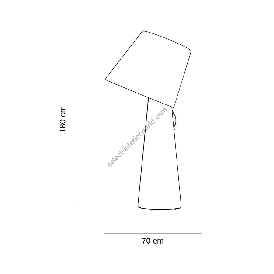 BIG BROTHER measures 180cm in height and the shade has a diameter of 70cm. It has a solid internal metallic structure that is covered with an advanced white translucent fabric of polyester fiber. There is, on demand, the possibility of selecting other fabrics, also printed. It incorporates light inside the upper shade, as well as in the base, both with E27 lamp holder.