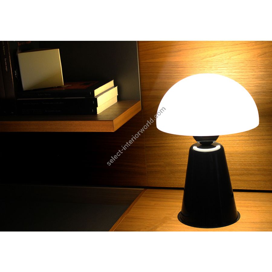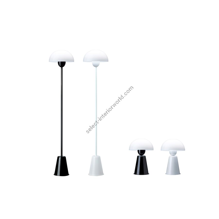 STAR has two versions: table lamp and floor lamp. Both are presented in two finishes: black and white shiny painted, in which case the shade is always made in white methacrylate and the foot in painted iron. Both versions have a dimmer located in the switch along the cable, which allows to adapt its high luminous performance to the atmosphere needs of each moment. STAR incorporates E27 in all cases.