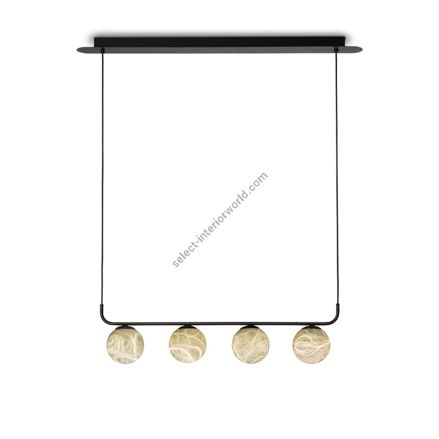 The TRIBECA collection consists of a single pendant with one shade and two superimposed, another with four lights with a linear canopy, a table lamp with a shade, and two floor lamps with one shade and two superimposed shades. Finally, the collection has a simple wall light, another wall light with reading arm, and a downlight. The structures are made of textured black iron and all the shades are 12cm-diameter alabaster spheres, which include an integrated 4.5W 270lm 2700K LED.
