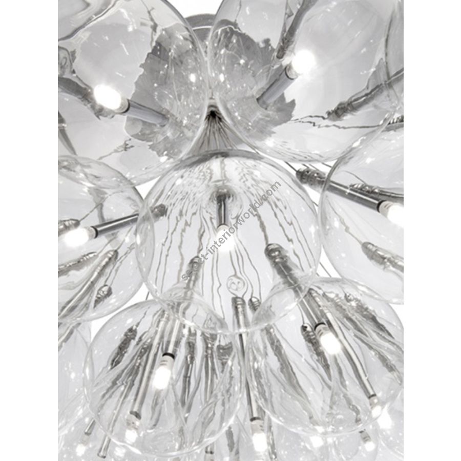 The structure of all DROP LED pendants is made of chromed iron and the lampshades are made of transparent drop-shaped borosilicate blown glass. All include the driver, and the 1.1W 95lm 2700K CRI>80 G4 LED bulbs (not dimmable) are always included.