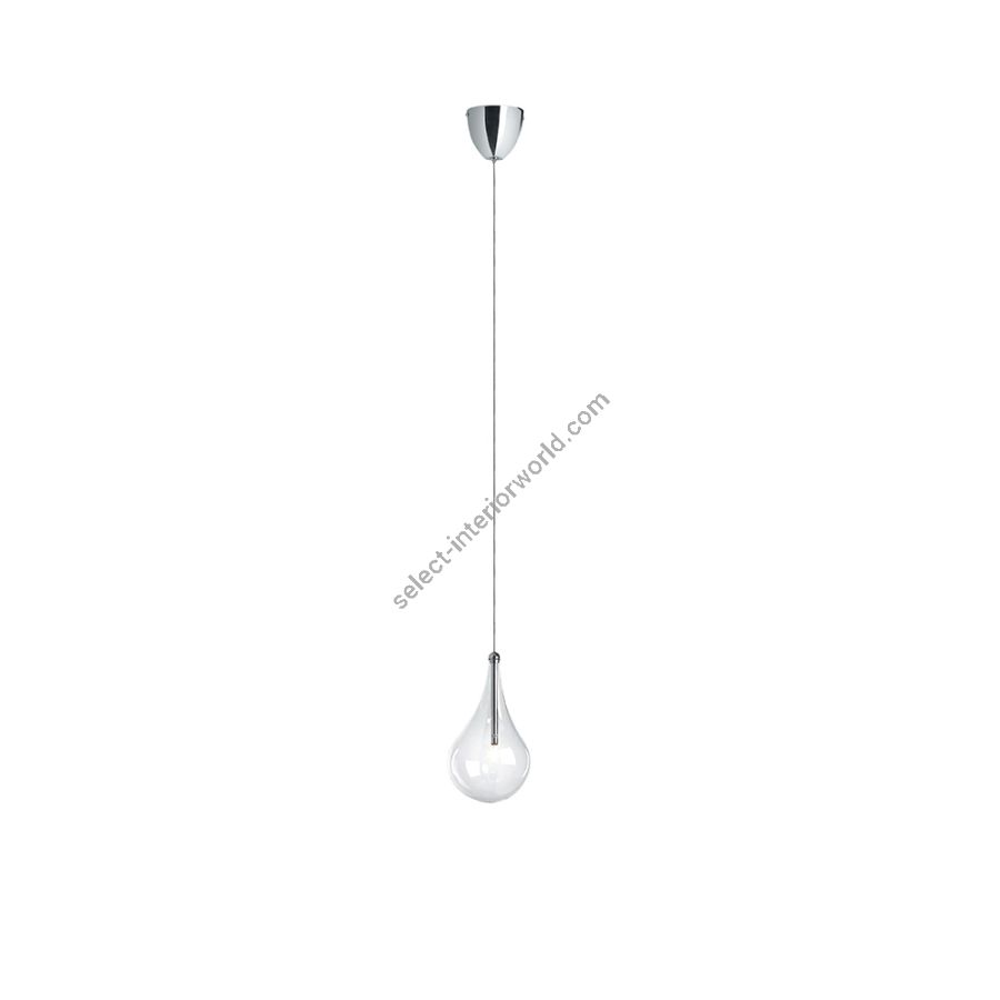 The structure of all DROP LED pendants is made of chromed iron and the lampshades are made of transparent drop-shaped borosilicate blown glass. All include the driver, and the 1.1W 95lm 2700K CRI>80 G4 LED bulbs (not dimmable) are always included