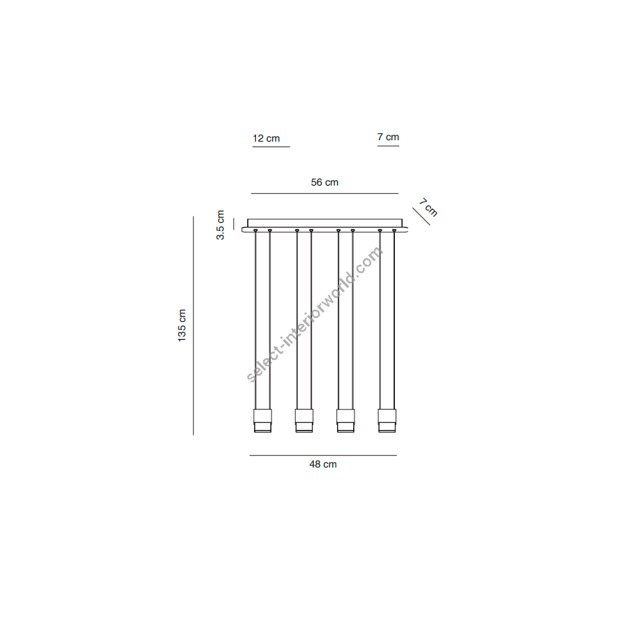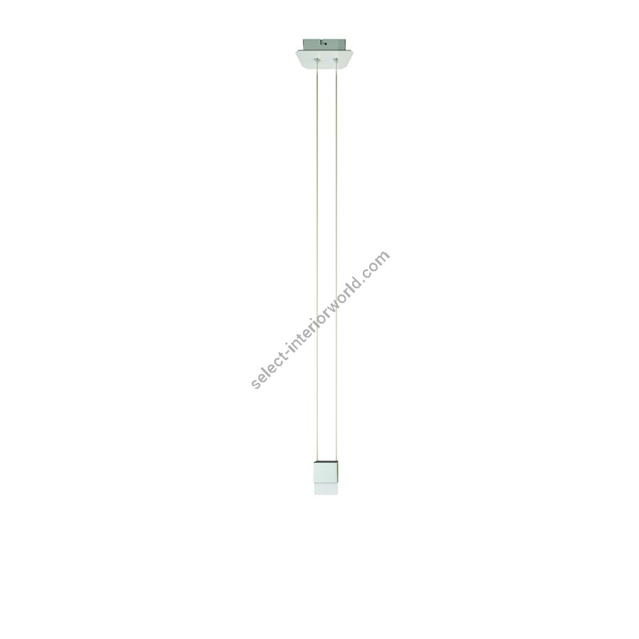 The LED BOX collection has two models: the single pendant and the four-light pendant with a linear canopy. The structures are made of mirror polished stainless steel. The metal part of the shade is made of cast aluminum, also in a mirror polished finish, and each shade is a quadrangular prism of sandblasted solid glass. The light source is a non-dimmable Citizen 3W 250lm 2700K integrated LED. In both models the driver is included, housed inside the canopy.