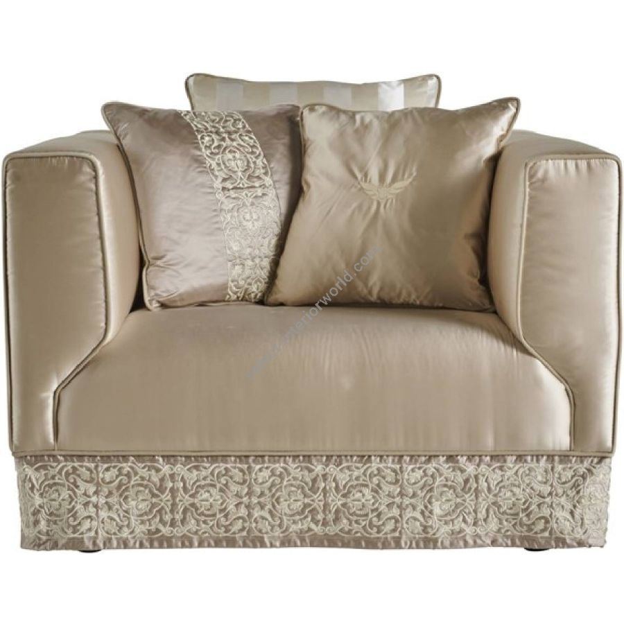 Elegant and comfortable, Broderie is an armchair with a classic and sophisticated style, characterized by the upholstery in the fine fabrics of the collection, enhanced by the band with decorative embroidery. Thanks to its timeless appeal, the armchair is able to fit gracefully into different contexts.