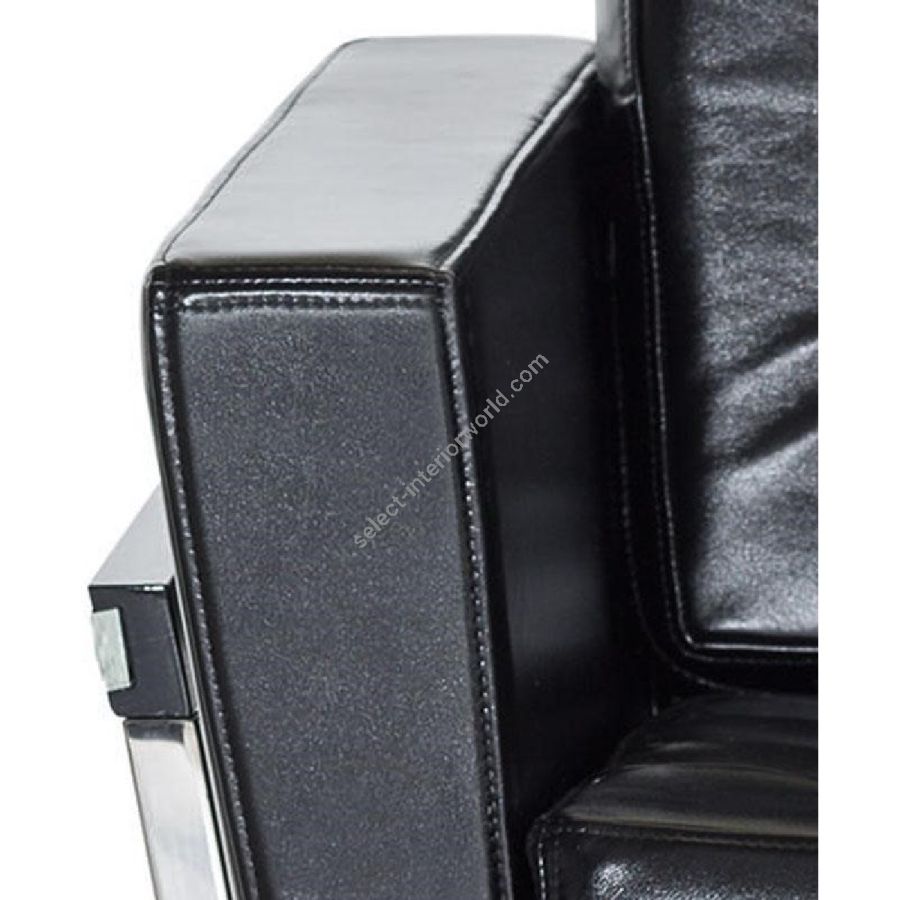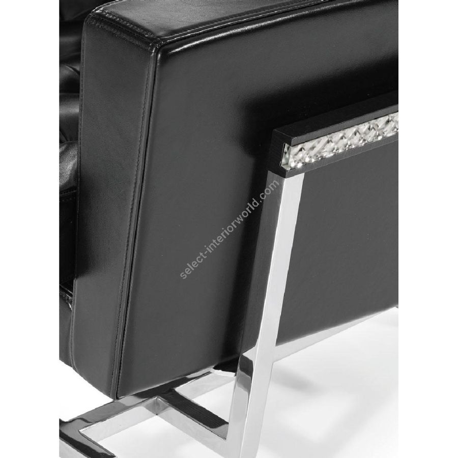 Black Leather Armchair. Structure in shiny stainless steel with inserts in extra-clear mirror and handmade shiny bevelings.