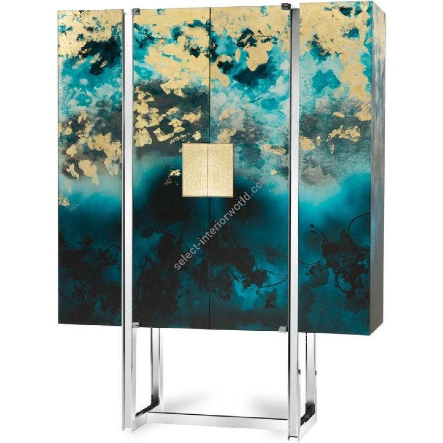 One-piece structure made of shiny stainless steel and antique bronze details. Two lateral doors with push-pull opening.