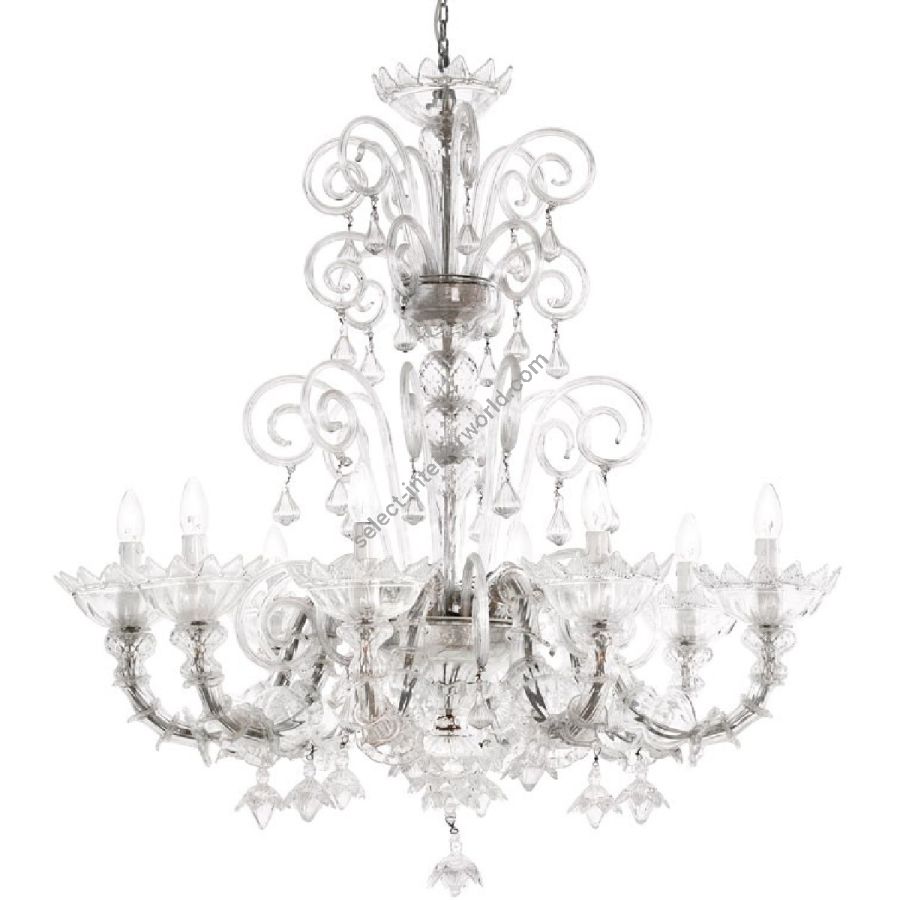 Metal structure with silver finish. Crystal coloured Murano glass with 8 lights.