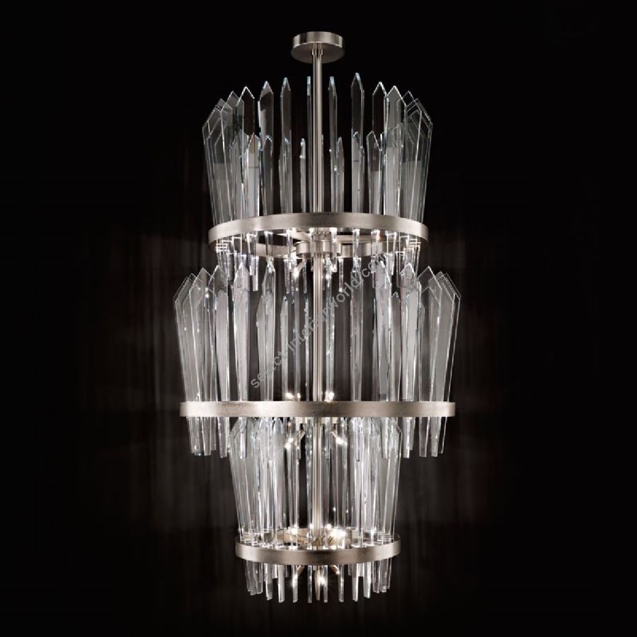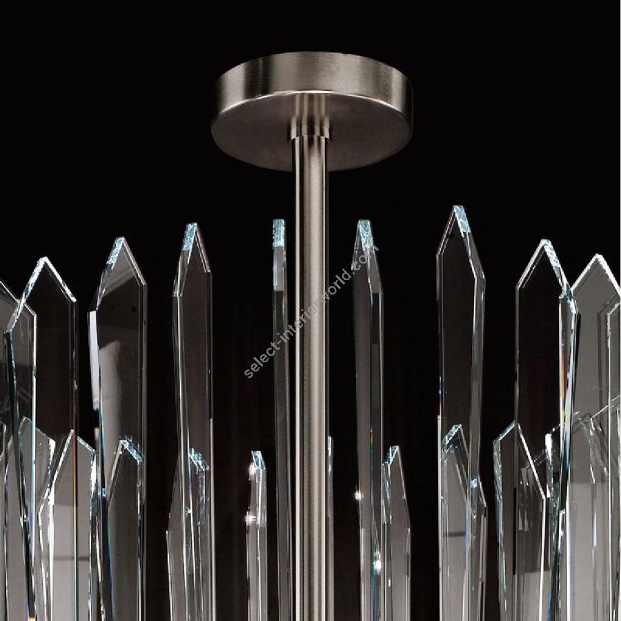 Structure made of brass with satin nickel finish. Hand bevelled extra-clear glass beams. LED lighting.