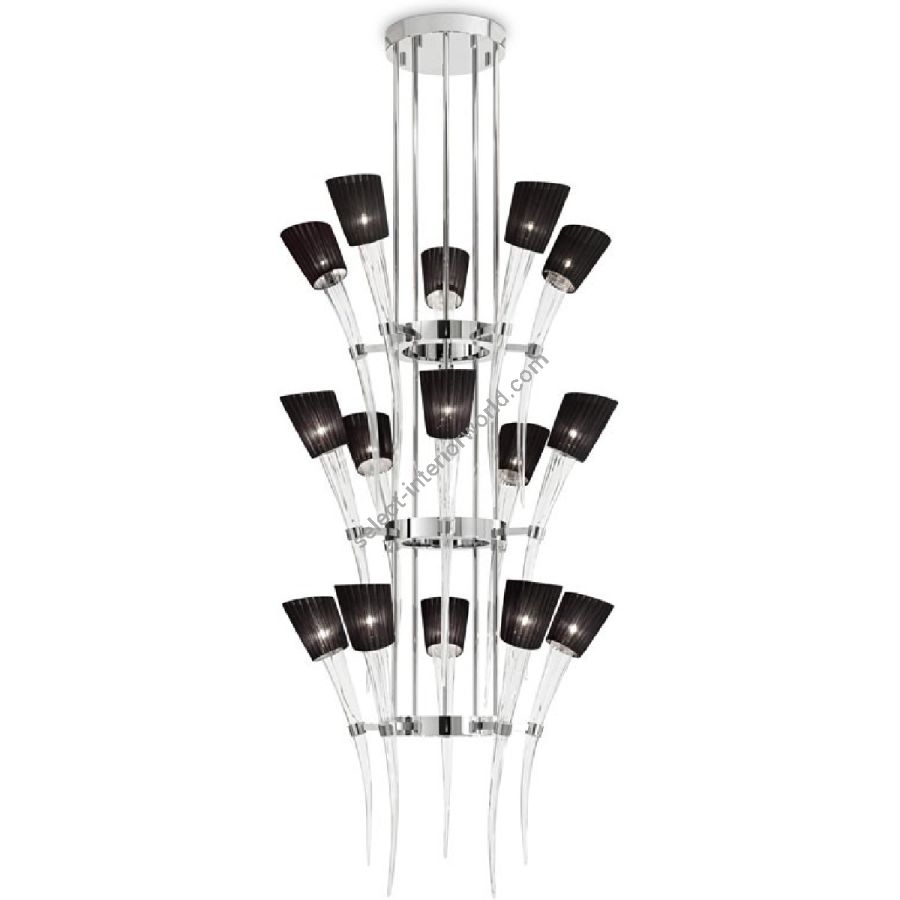 Pleated black coloured lampshades with 15 (5+5+5) lights.