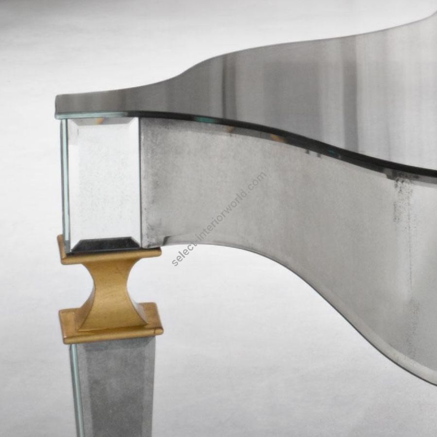 Structure made of fir wood with gold antique leafed finish. Four tapered legs. Shaped top and legs made of bevelled glass with medium antique mirrored finish.