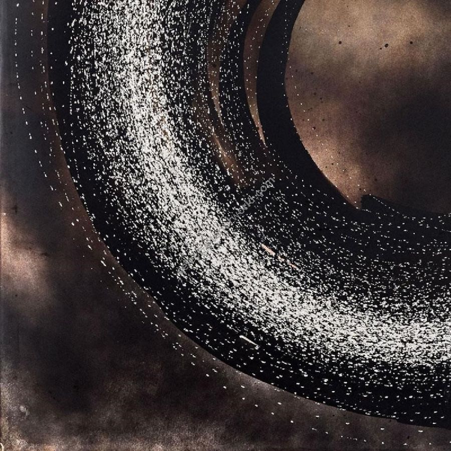 “Milky Way” decor with brown and black varnish hues on a circular concentric shiny decorative engraved motif.