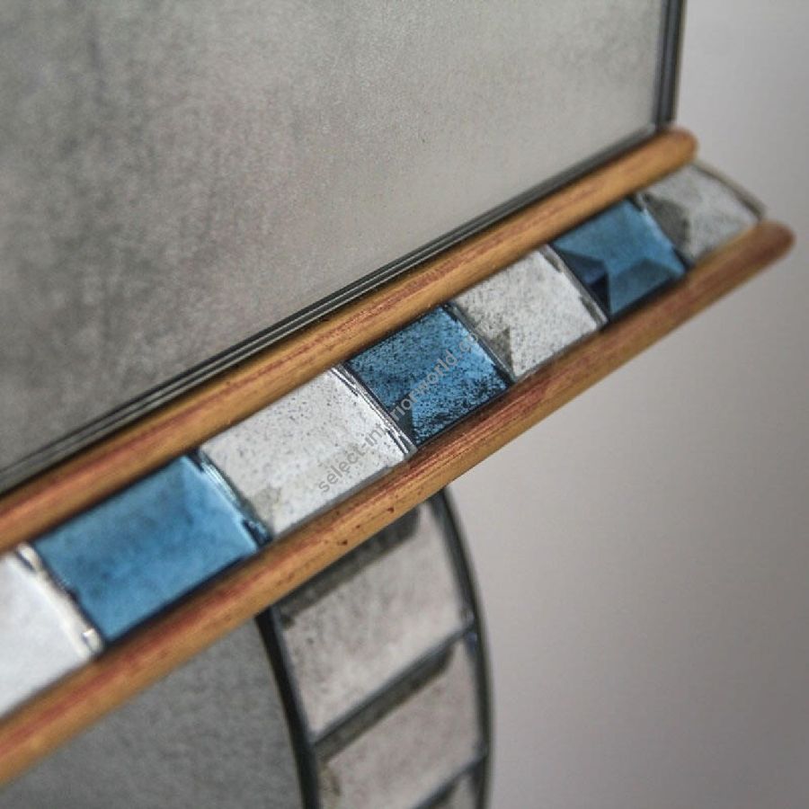 Top made of bevelled glass with medium antique mirrored finish. Frame made of an alternate pattern of glass tiles with blue and medium antique finish.