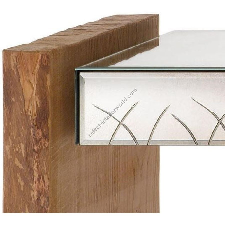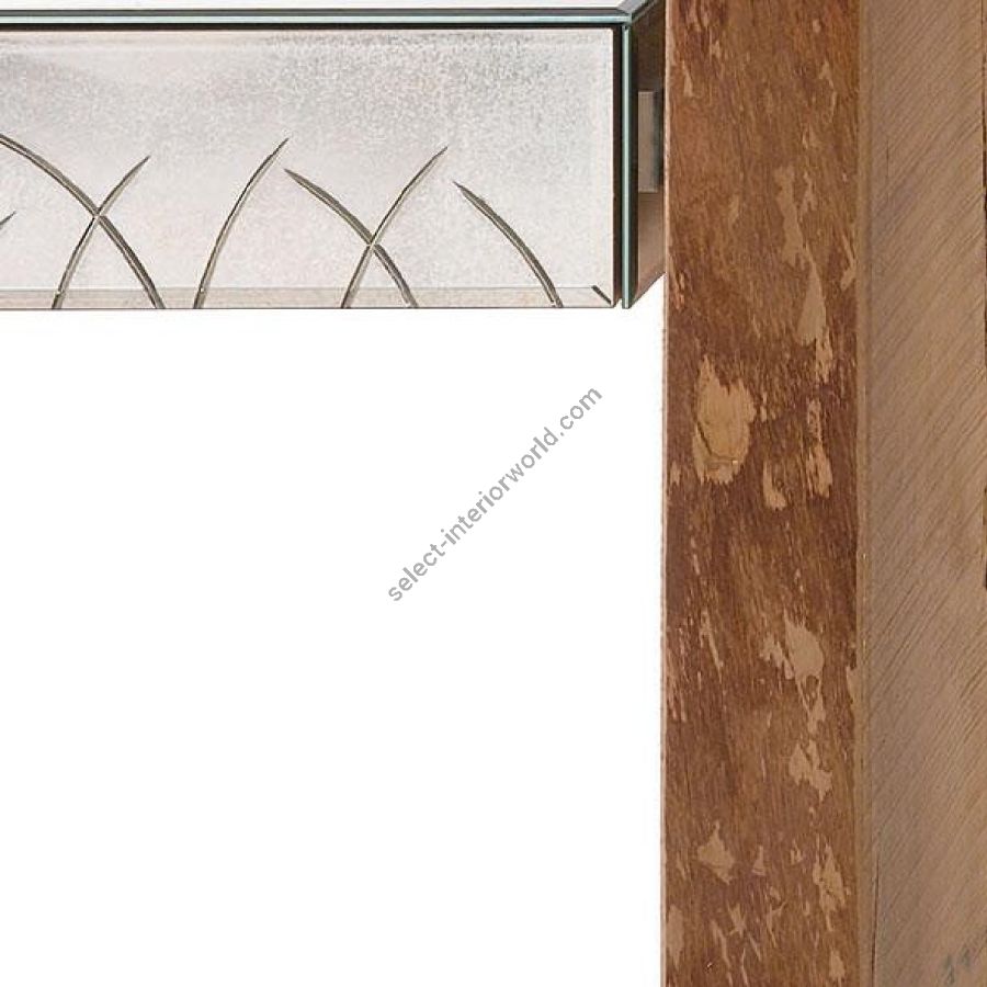 Console with two drawers in antiqued mirror and shiny handmade engravings.