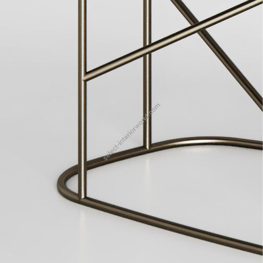 Metal structure with brushed burnished brass finish. 10 mm thick glass top decorated with Roddi and Neive finish.