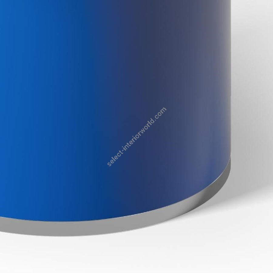 Shiny deep blue lacquered plywood structure. Top with extra-clear acid etched 6 mm thick glass varnished in multicolour and decorated with silver hand engravings.