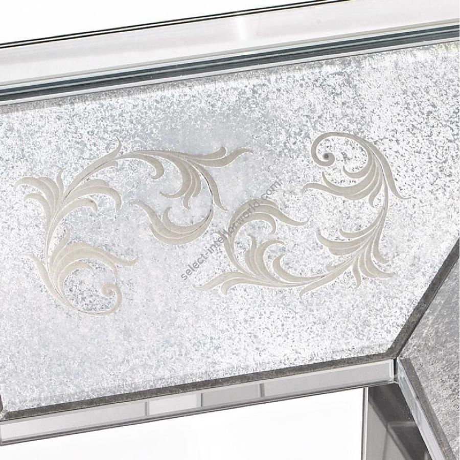 Inner frames on the sloped surfaces of the top made of engraved glass with heavy antique mirrored finish. Floral motif engravings.